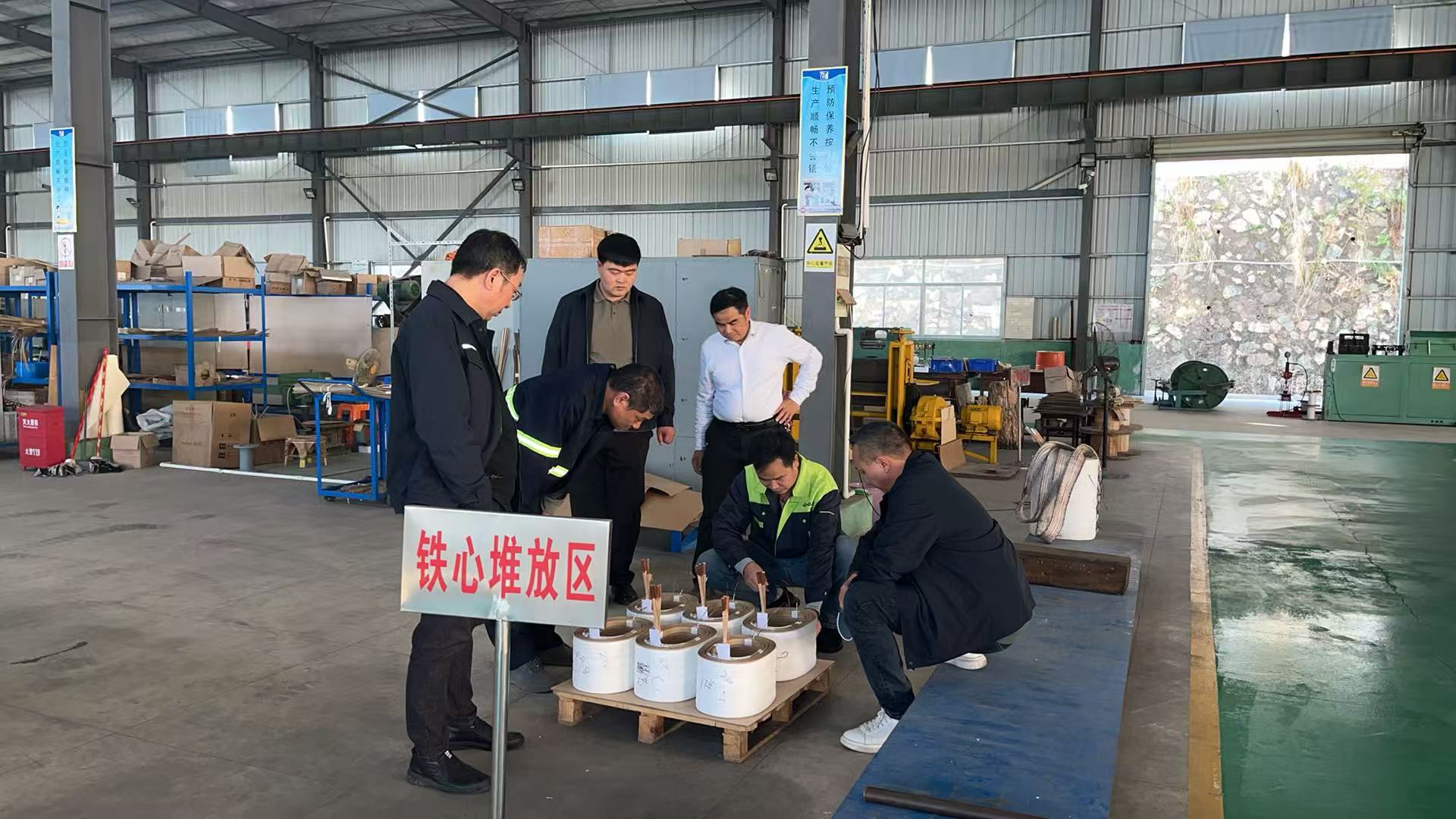 考察过程中,上杭县供电局领导与客户考察团先后深入我厂铁芯堆放区、卷材加工区、变压器总装车间等核心生产区域,近距离观摩变压器从铁芯加工、绕组制作到成品检测的全流程生产工艺。公司负责人及技术骨干全程陪同,针对生产设备的技术参数、产品质量的管控标准、定制化生产的服务能力等问题,向考察团进行了细致讲解,并现场展示了我厂自主把控的核心生产工序与成品变压器的性能优势。